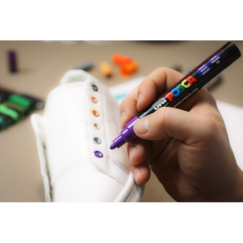 The Posca water-based pigment marker impresses with its opaque and vibrant colours. It writes on almost all materials such as metal, plastic, paper, cardboard or fabric and is permanent. It is smudge-proof on glass, but can be removed with water. The pens are widely used by artists and hobby artists, but also in the industry. Children also love painting with the markers and by the way, the creativity of the little artists is encouraged. A perfect marker for creating unique designs on many surfaces or even in the automotive industry. If the colours are still damp so they can be watercolour or mixed, they can be painted over after drying. The fine bullet tip (PC3M) marker produces a line width of 0.9-1.3 mm. It is ideal for painting, designing, colouring, drawing and writing. The tip is removable so can be rinsed or replaced. You will receive a POSCA marker in the colour lavender.