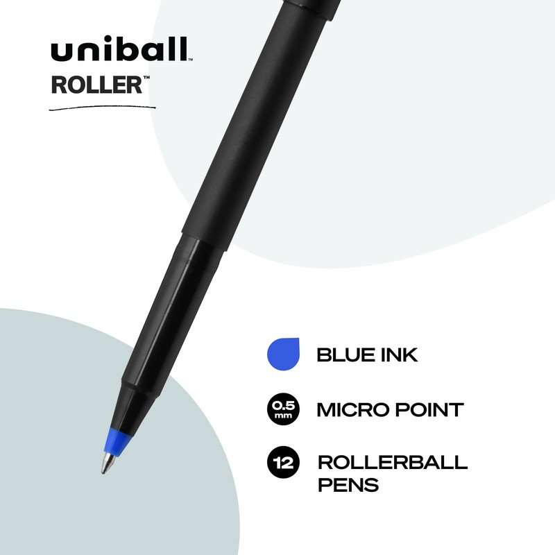 Uni-Ball uni Roller Ball Stick Pens, 0.5 mm Micro Tip, Blue, Pack of 12