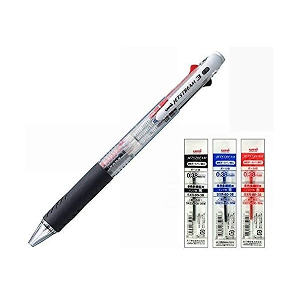 Uni Ballpoint Pen Jetstream 3 Color Black Red Blue Ink 0.38mm Transparent (SXE340038.T)+ 0.38 3 Color Refill