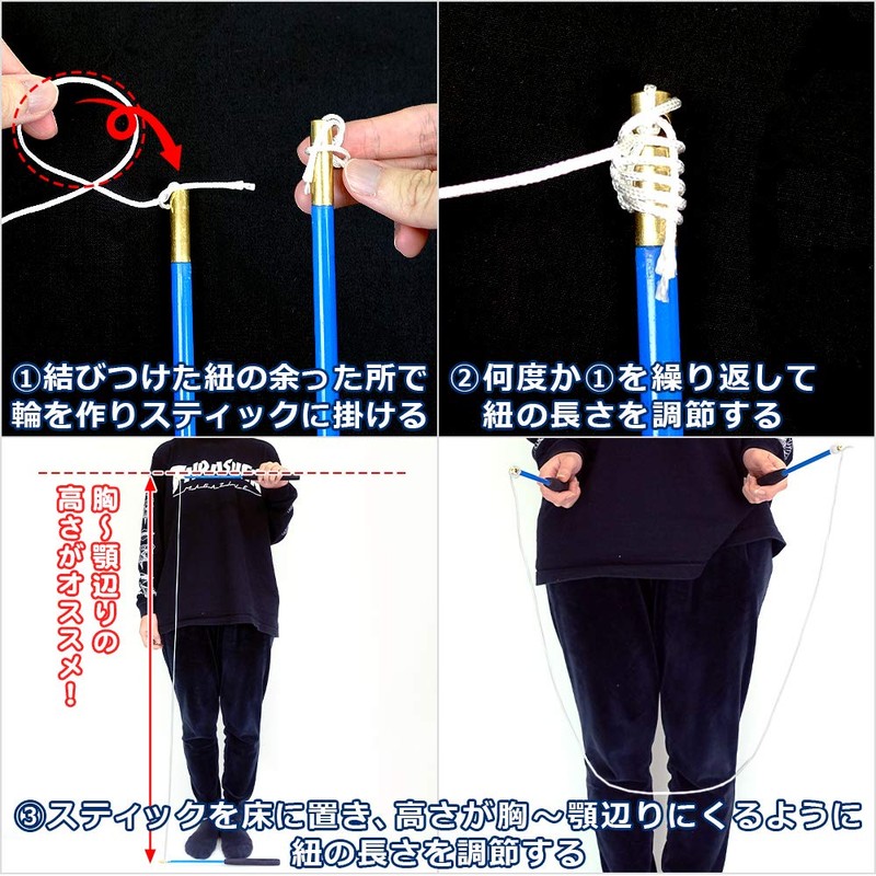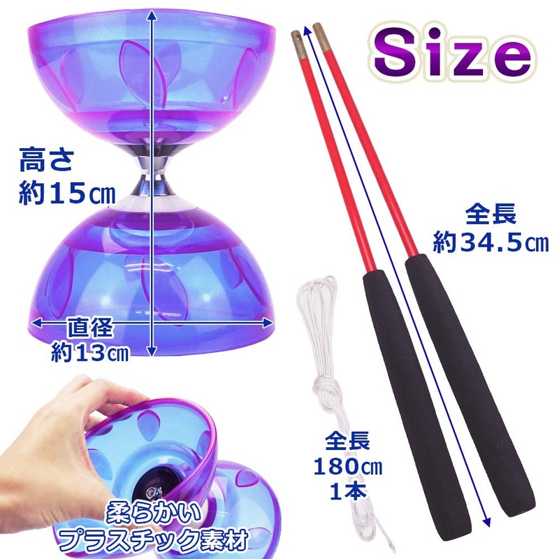 - (Size) Body: Diameter: Approx. 5.1 inches (13 cm); Height: Approx. 5.9 inches (15 cm); Stick: Length: Approx. 13.6 inches (34.5 cm); Set Contents: Main unit, 2 sticks, string 70.9 inches (180 cm); Dedicated storage case *The color of the stick and string are assorted