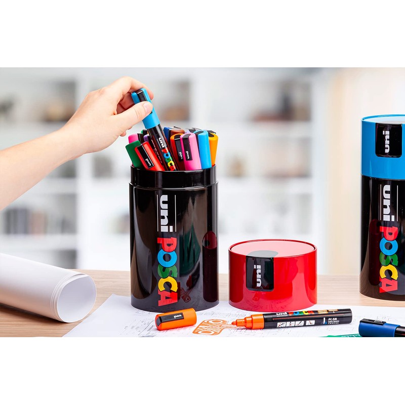 - Box contents: 18 Uni Posca markers with medium bullet tip, line width 2.5 mm, assorted colours