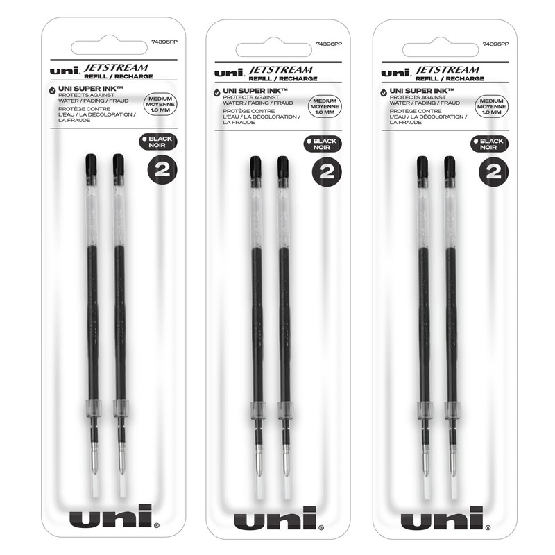Uniball Jetstream Ballpoint Pen Refills, 1.0mm Bold Point, Black Ink, 6 Refills