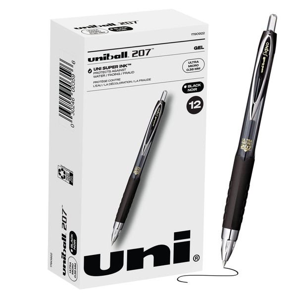 Uniball Signo 207 Gel Pen 12 Pack, 0.38mm Ultra Micro Black Pens, Gel Ink Pens | Office Supplies Sold by Uniball are Pens, Ballpoint Pen, Colored Pens, Gel Pens, Fine Point, Smooth Writing Pens