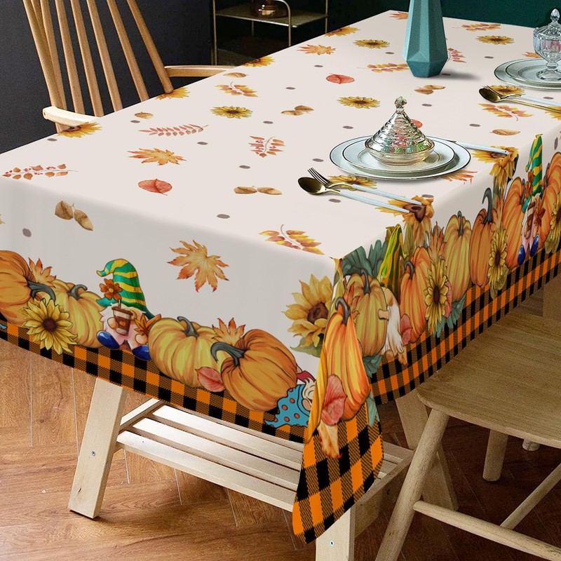 - WIDE OCCASION: Our fall oblong tablecloth with pumpkins, maple leaves and gnomes is a good choice to your fall kitchen dining decor, also a good decoration for party and picnic. Also this fall table cloth can be a gift for your loved one on fall season or thanksgiving day.