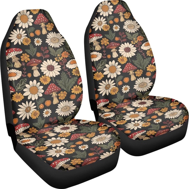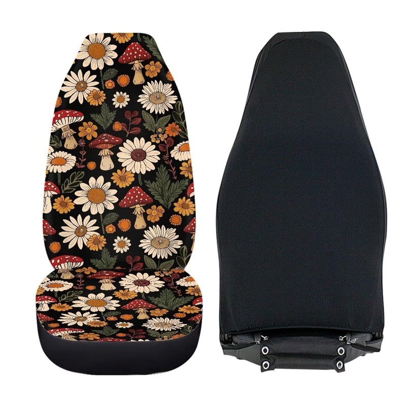 UNICEU Daisy Mushroom Pattern Car Seat Covers Thin Cover for Front Seats Protector Breathable for Summer Automotive Interior Accessories