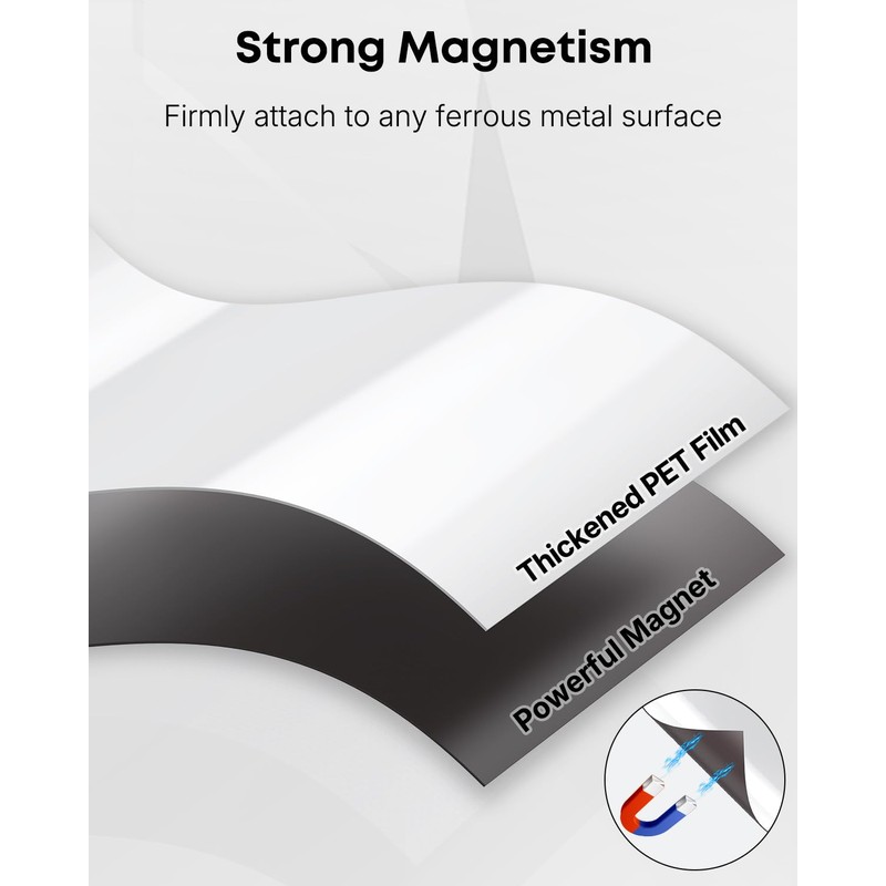 - Strong Magnetism: Featuring a powerful magnetic backing, the whiteboard for fridges attaches firmly to any flat or curved ferrous metal surface. No sliding or falling during daily use! (NOTE: Not work on non-magnetic metals like most stainless steel!)