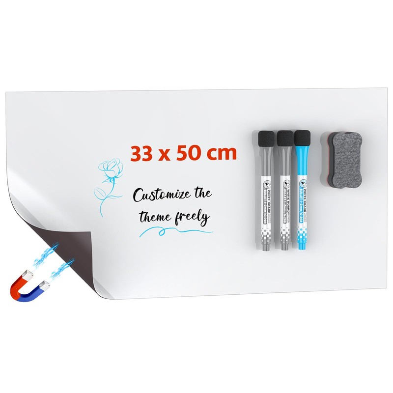 - Cuttable for DIY: Size: 33 x 50 cm. The large magnetic whiteboard for fridges creates abundant room for your biggest ideas. Simply cut to any shape or size you like with regular scissors. Unleash your creativity without limits