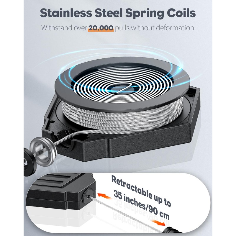 - Strong Retraction Force: Robust inner coils – the stainless steel spring coils are greatly improved to withstand over 20,000 pulls without deformation. During tension, it also retracts automatically when items reach 9 oz.
