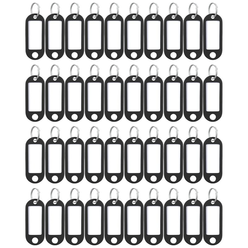 Uniclife Pack of 10 Key Chains 5 cm Soft Plastic Keyrings with Blank Paper Labels Clear Window Protectors and Split Rings Flexible Item Identification Black