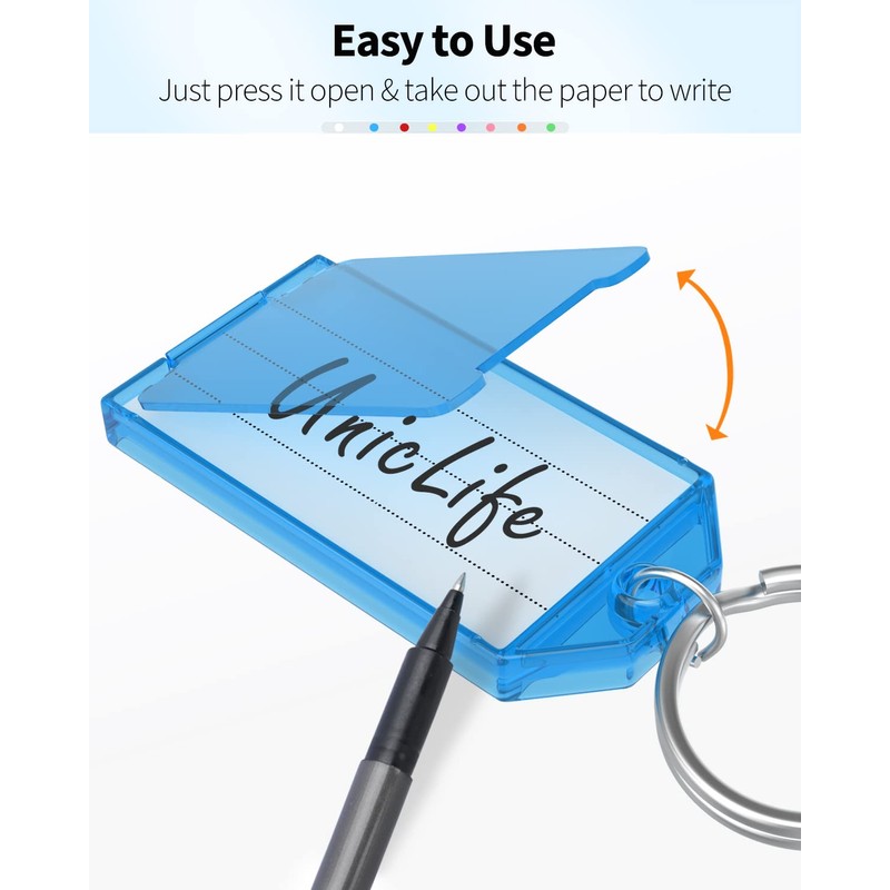 Uniclife Uniclife 200 Stück Robust Kunststoff Schlüsselanhänger beschriftbar, Schlüsselanhänger zum Beschriften mit Split Ring Label Fenster, 8 Farben