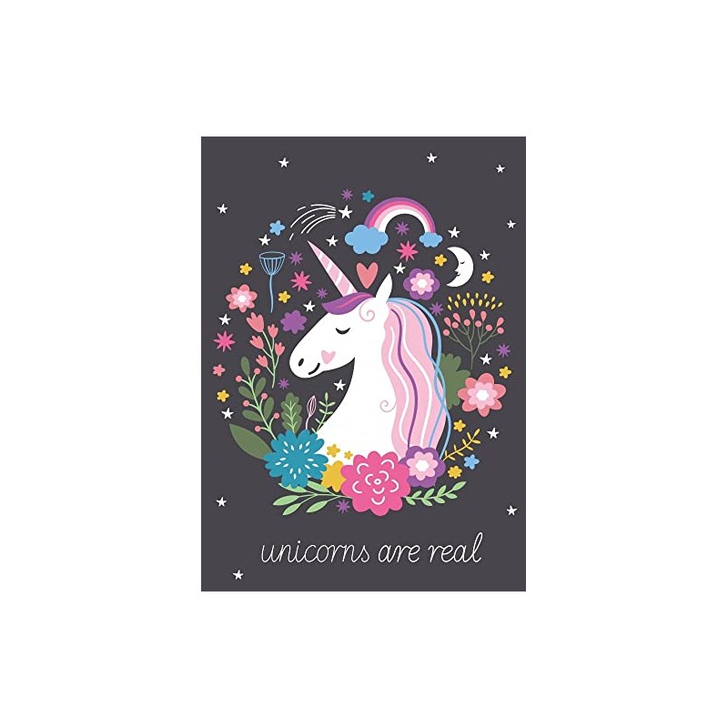 The cuddly blanket has a size of 140 x 100 cm and is printed with a unicorn print.