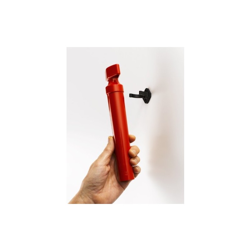 - Fits easily in an apron pocket, in a holster, or snaps into a clip mounted on a wall.