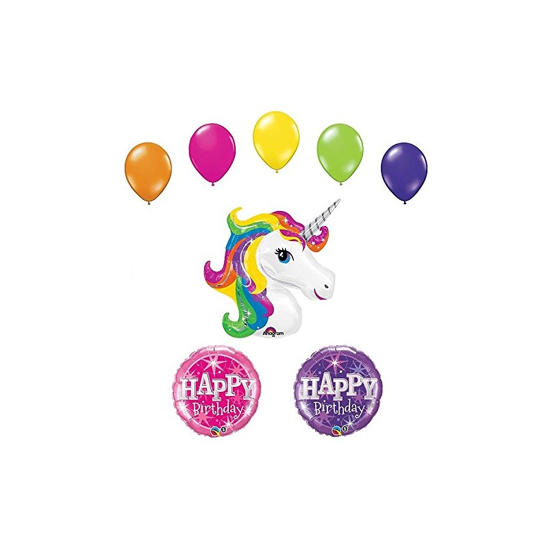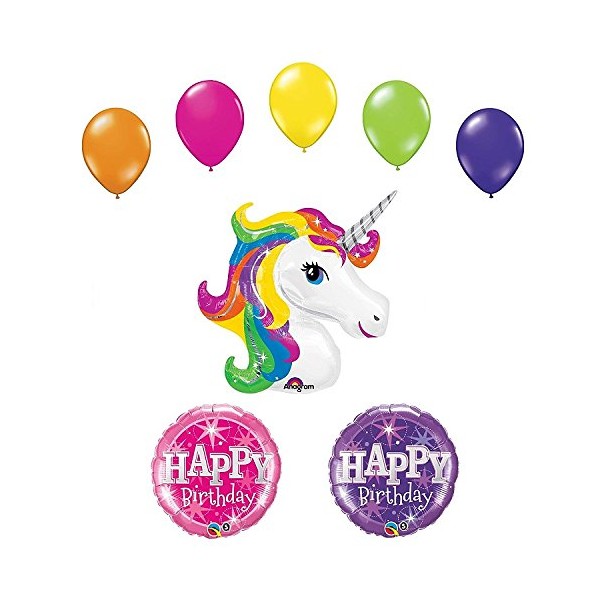 UNICORN Rainbow MAGICAL Fairy Sparkle 8 Piece Party Mylar & Latex Balloons Set