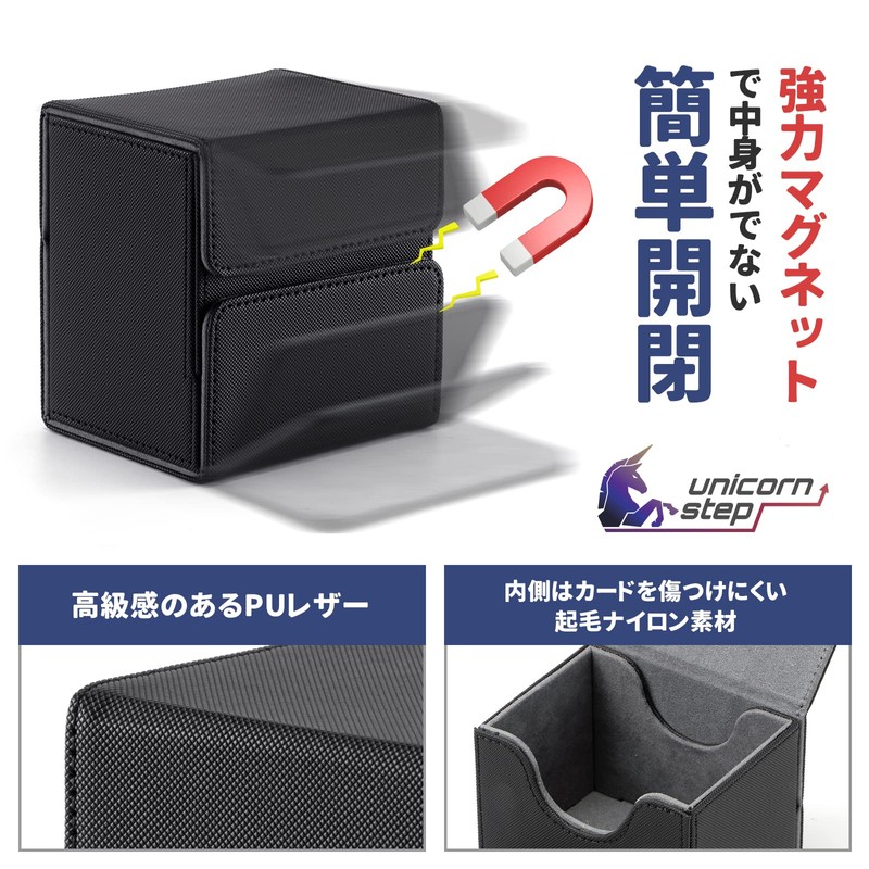 unicorn step Deck Case, Trading Card Case, Compatible with Trading Card Sleeves, Stores Over 100 Cards [Damekan Dice, Small Items] PU Leather (Black)