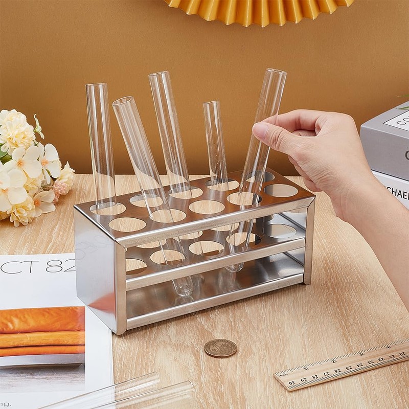 UNICRAFTALE 1 Set 3-Tier Test Tube Holder 10 Seats Test Tube Rack Test Tube Stand Stainless Steel Tube Holder Laboratory Supplies Rectangular Test Tube Stand Holes 30 mm for Classroom Laboratory