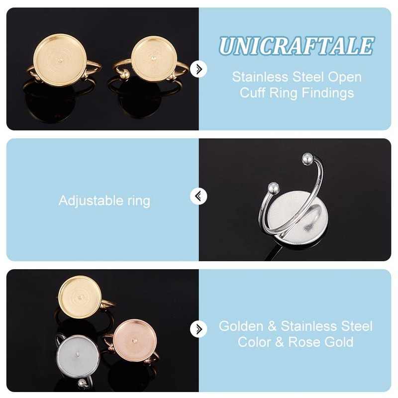 UNICRAFTALE 18-Piece DIY Cuff Rings 17 - 18 mm Round Open Cuff Ring 304 Stainless Steel Blank Cabochon Ring Bases Metal Ring Blanks for Ring Making