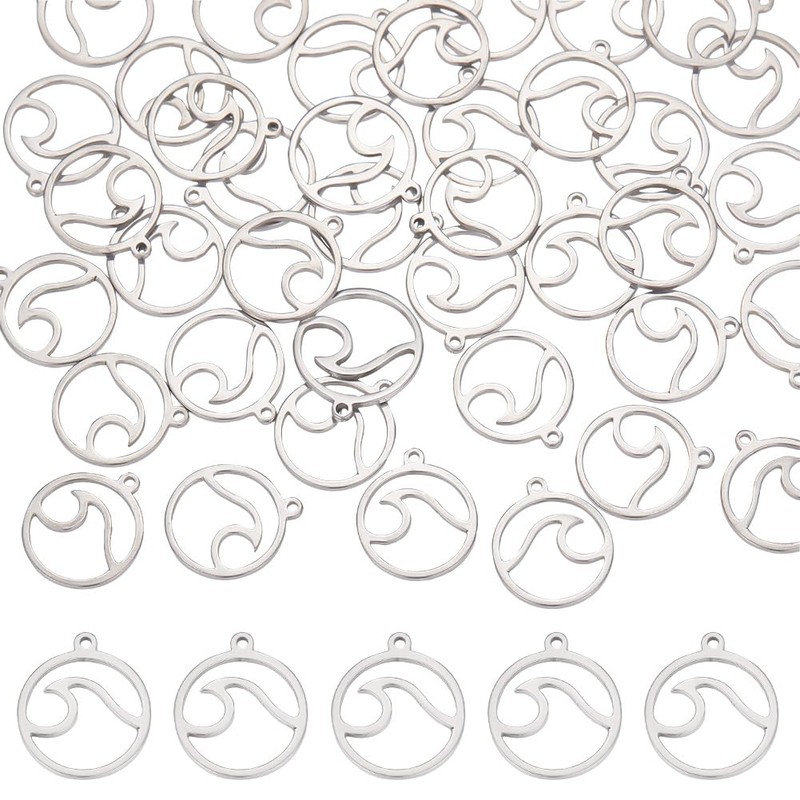 UNICRAFTALE 40個 ウェーブペンダント フラットラウンド ウェーブステンレススチールチャーム オーシャンペンダント 低刺激性チャーム アウトドア愛好家 サーフクライマー用 ステンレススチールカラー