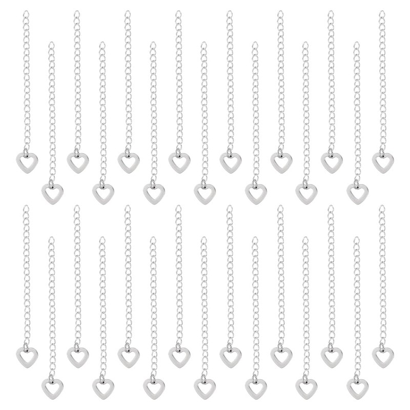 UNICRAFTALE 40Pcs 304 Stainless Steel Curb Chain Extension End Chains with Heart Charms Chain Tabs Necklace Bracelet Extension Chain Anklet Extenders For DIY Jewelry Making Stainless Steel Color 60mm
