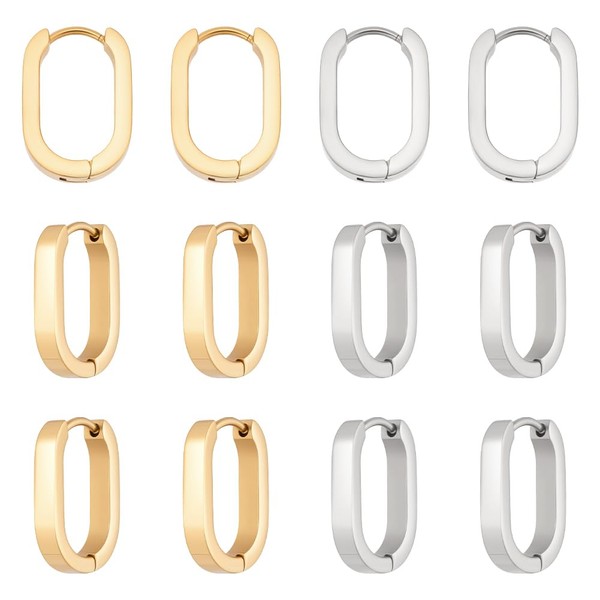UNICRAFTALE 6 Paris 2 Farben Edelstahl Huggie Creolen 17mm Lang Ovale Endlos Creolen Kleine Sleeper Piercing Ohrring Set Für Frauen DIY Schmuckherstellung