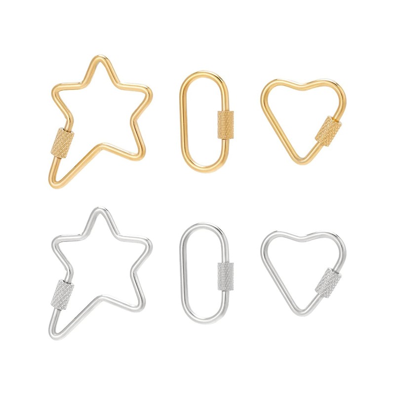 UNICRAFTALE 6pcs 3 Styles Screw Carabiner Lock Charms Stainless Steel Locking Keychain Carabiner Claw Clasp Heart Heart Carabiner Hook Clip Key Holder 22~35.5mm