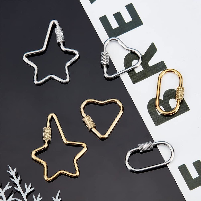 UNICRAFTALE 6pcs 3 Styles Screw Carabiner Lock Charms 2 Colors Stainless Steel Locking Keychain Carabiner Claw Clasp Heart Heart Carabiner Hook Clip Key Holder 22~35.5mm