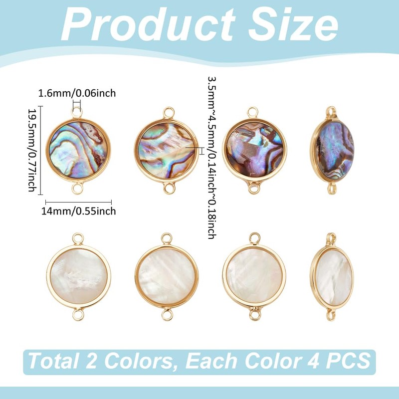 UNICRAFTALE 8Pcs 2 Styles Abalone Shell Charms Paua Shell Pendant Flat Round Shell Charms Natural Pearl Pendants Gold Pearl Loose Beads Connector Charm with 2 Holes for Bracelet Jewelry Making