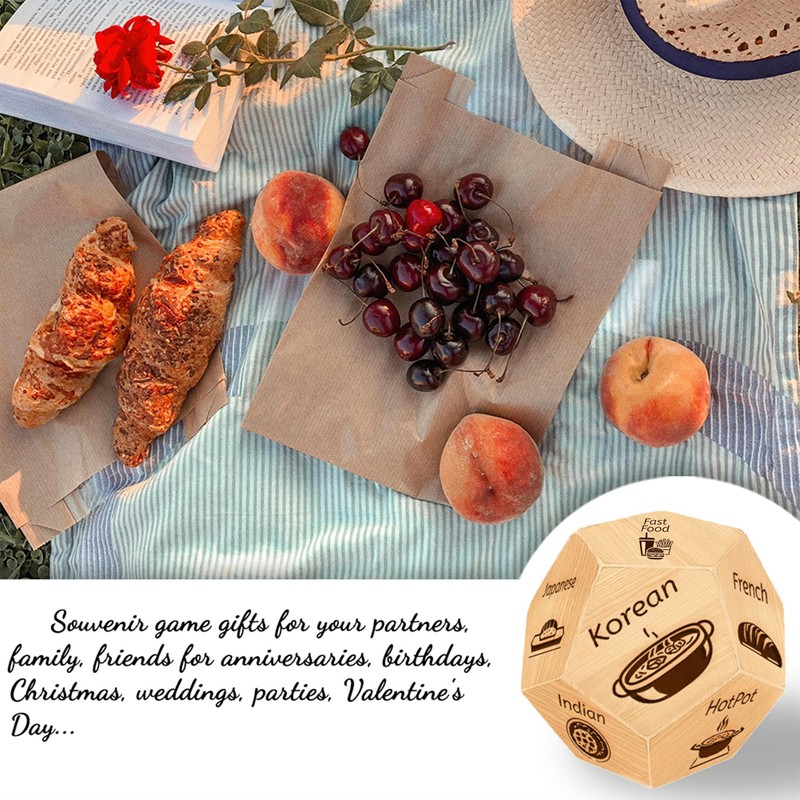 - Food Decision Sieve:Do you struggle with what to eat every day? This decision dice is engraved with 12 cuisines: pizza, hotpot, fastfood, japanese, french, korean, mexican, seafood, spanish, vegetarion, sandwiches, indian. You can roll the dice to decide what to eat.