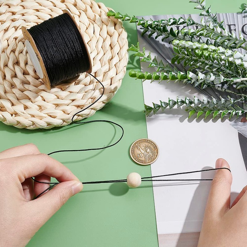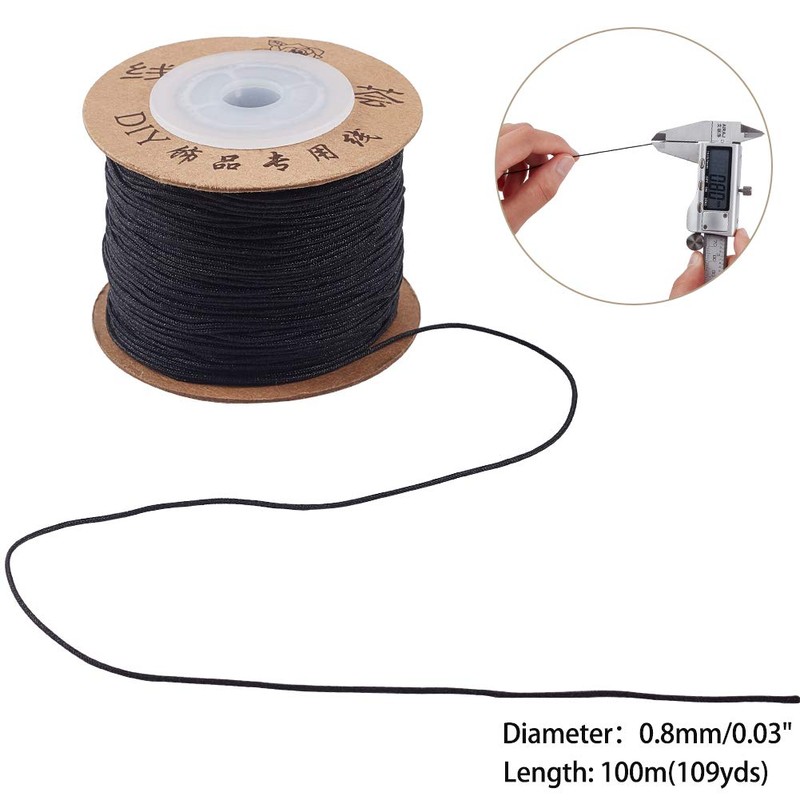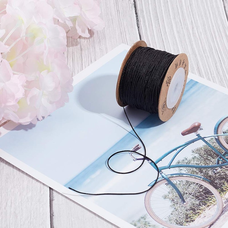 UNICRAFTALE Length of about 394.4 ft (100 m), 0.03 inch (0.8 mm) Thickness, 1 Roll/Set, Nylon Thread, Bead Cord, Black, Black Umbrella, Leatherwork, Wind Chime Cord, Braided Cord, Hand-Knitted, Hand