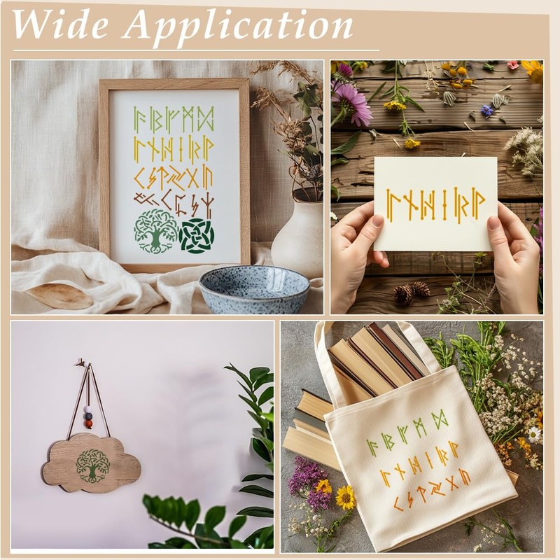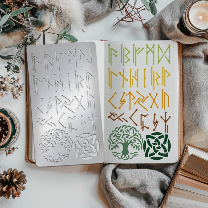 - Viking Runes Metal Stencil: This stainless steel stencil is designed in viking runes patterns. You can use these classical and elder words to add unique antique feeling to the artwork that you want to recreate.