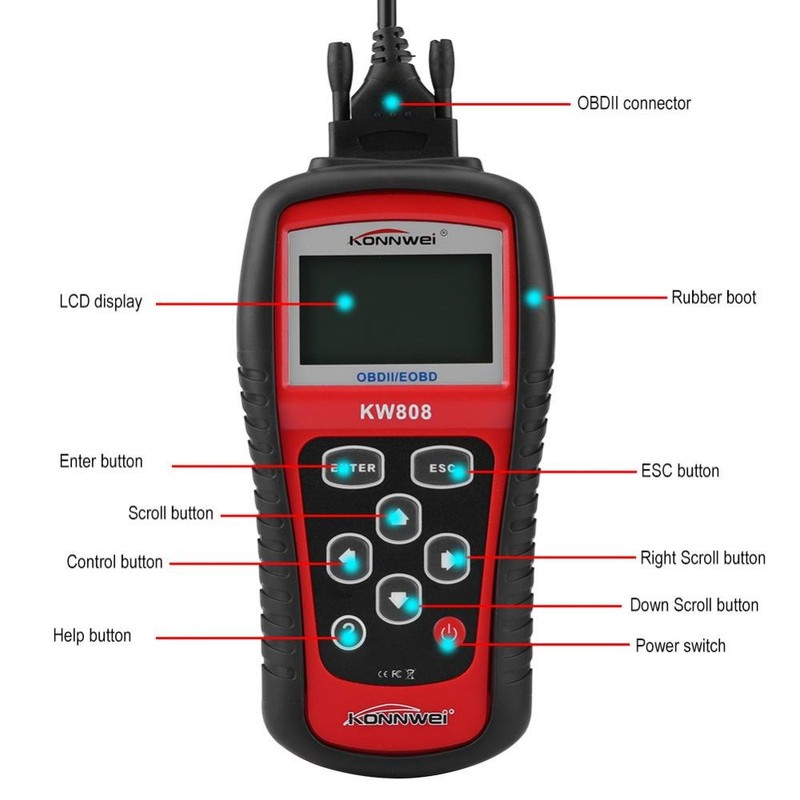 Unidad de herramienta de diagnóstico OBD2, KW808 OBD2 OBDII EOBD lector de código de coche, escáner de diagnóstico, herramienta de escaneo de código de error