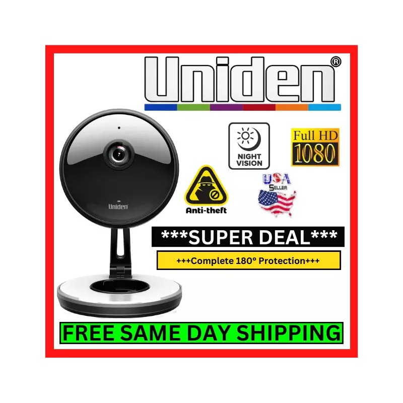 Uniden Smart WiFi Security Camera HD 1080P Night Vision Cam 2-way Audio Live Video Home
