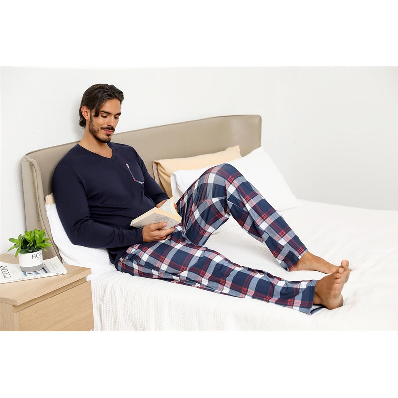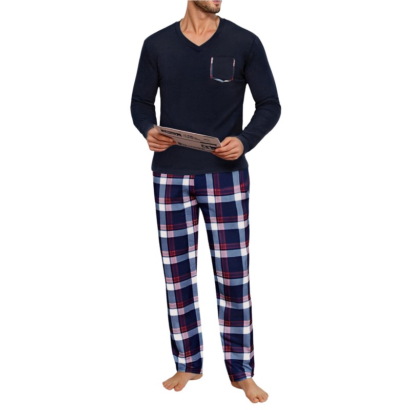 - 【Characteristic】Winter pyjamas for men long sleeve pajamas + check pants, with two side pockets. Classic Plaid pajama pants give you classic plaid fashion, featuring an elastic waistband with a drawstring.