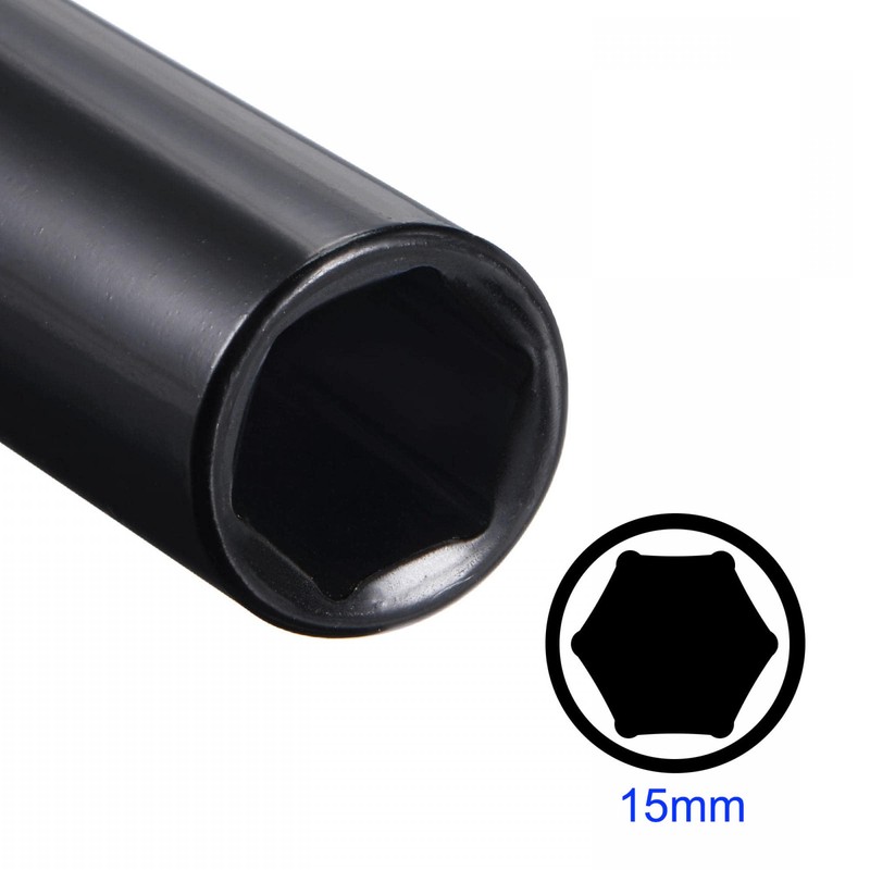 - Proper Size 1/2 inch drive, 15mm 6-point socket, 78mm total length. The different sizes of impact socket are enough to meet your work.