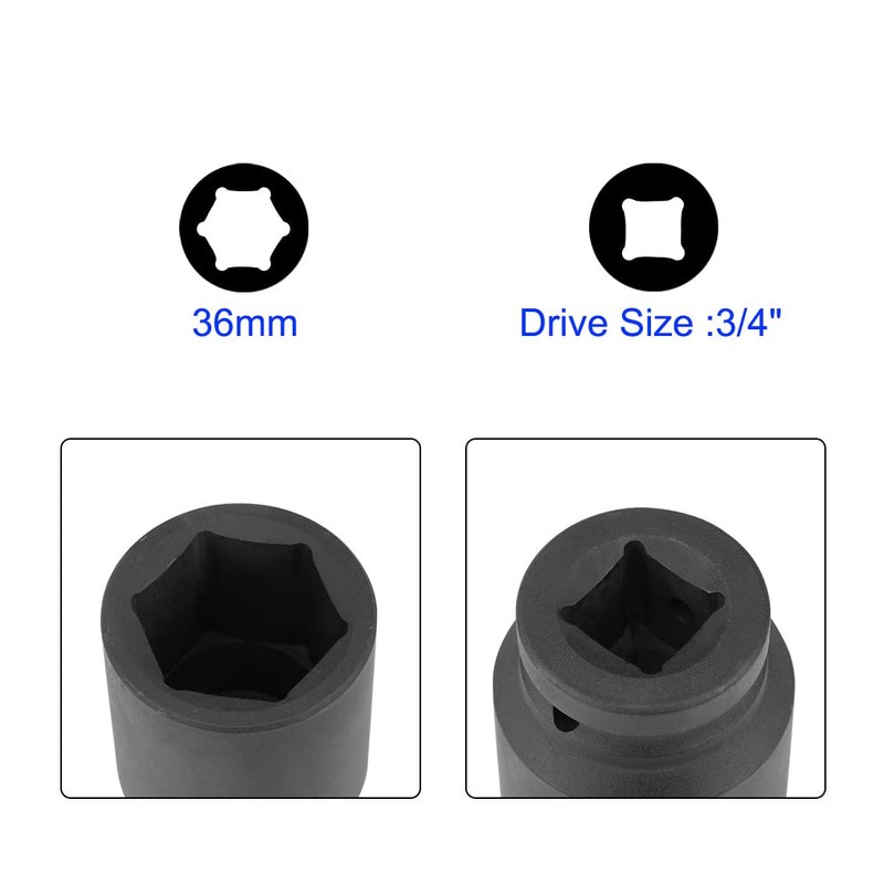 - 【Appropriate Size】3/4 inch drive, 36mm 6-point socket, 78mm/3.07" Overall length.The multiple size of impact socket is enough to meet your work uses.