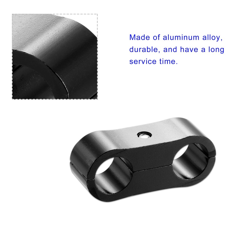 Unifizz 8Pcs Car AN4 11mm Black Hose Separator Clamp Aluminum Fuel Line Mounting Clamp Divider Hose Fitting Adapter Fit for 1/4 Fuel Line, Oil Line, Brake Line, Water Pipe and Gas Line
