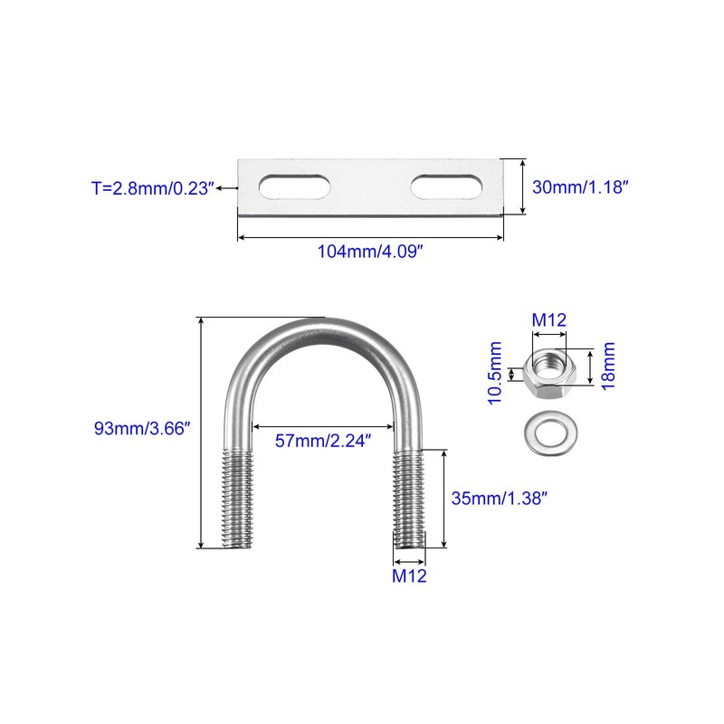 • 【Premium Material】U bolts are made of high quality 304 stainless steel construction for strength and durability.With bright polish,making them resistant to rust, corrosion, and wear; The nuts and washers are also made of durable materials that ensure long term use.