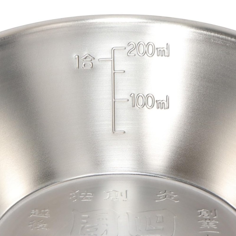 - This is a limited edition shella cup with an engraved 40th anniversary logo arranged in Japanese patterns. ■ Size: Approx. Φ 4.7 x 6.9 x 1.6 inches (11.9 x 17.5 x 4.1 cm) *Please be aware that there may be slight differences in size depending on the product. ■ Weight: Approx. 3.2 oz (90 g). ■ Capacity: Approx. 10.1 fl oz (300 ml). ■ Material: Stainless steel. ■ Features: Stacking and stackable to save storage space. Includes scale: Bonfire shella-cup, Fuji cherry blossom shella-cup, Tsubame Sanjo shella cup, UF shella cup, Titanium, Carachella 300 common. The 40th anniversary logo is engraved in Japanese pattern