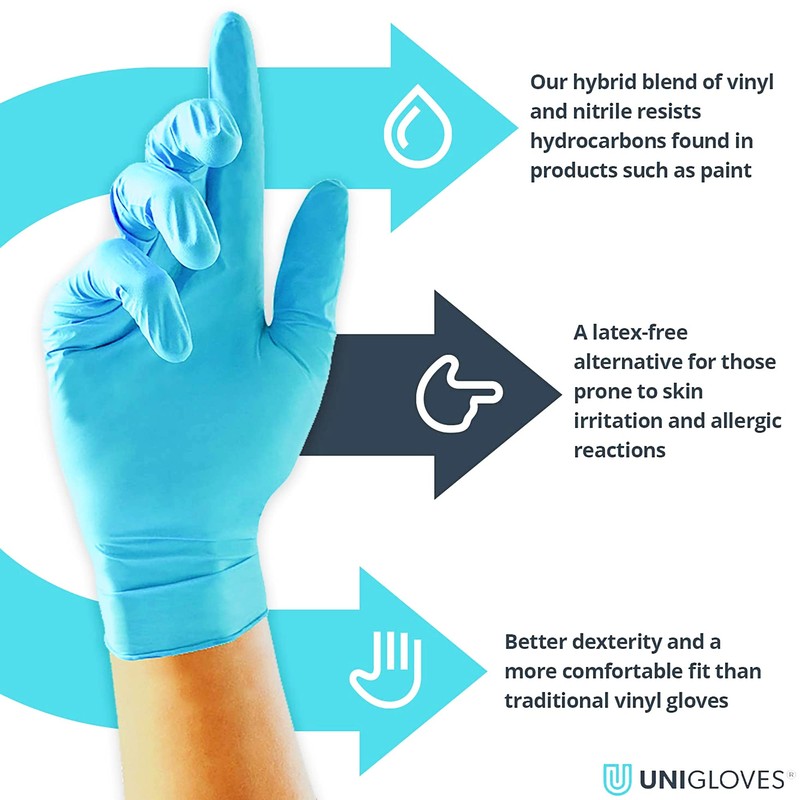 - Light, comfortable and easy to wear, thanks to the soft and unique blend of vinyl and nitrile, which makes the glove more comfortable and provides better dexterity than traditional vinyl gloves