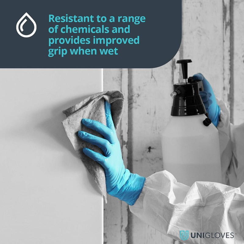 Unigloves Unitrile GS0054 Examination - Multipurpose, Powder Free and Latex Free Disposable Gloves, Box of 100 Gloves, Blue, Large