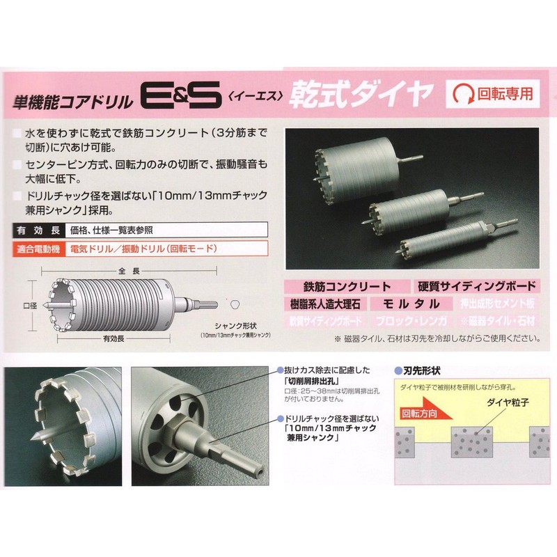 Unika ES-D38SDS ES Core Drill Dry Diamond SDS Shank 1.5 inches (38 mm)