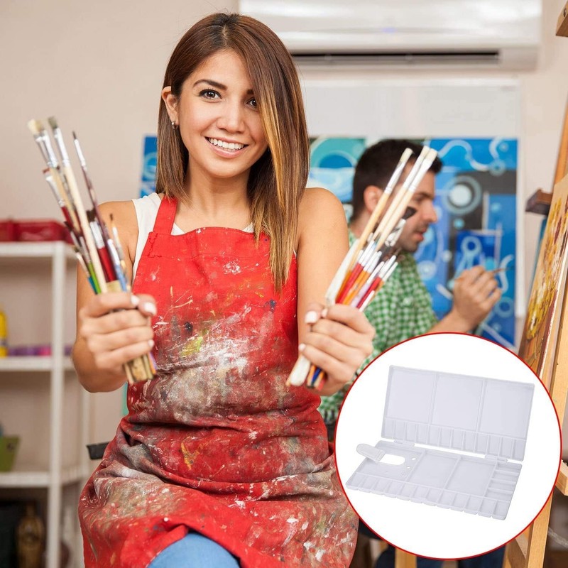 - Premium Plastic Palette Easy to Carry & Storage: Made of molded white premium plastic, NOT thin plastic, the palette is durable and easy to clean. This painting palette is small and lightweight, thanks to its open and closed design this palette is convenient to storage, folds up and immediately halves in size, save your space.