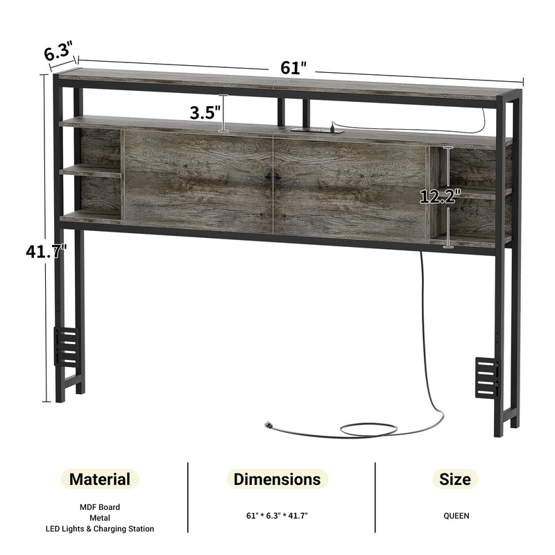 - 【FANTASTIC SMART RGB LED LIGHT】The queen bed headboard comes with cool RGB led lights on the storage shelves. It is built in music sync function, 60000 colors, multiple dynamic modes, turn on/off and timing setting function by app or IR remote control for convenient daily use. You can use it as reading light, night light or set a comforting mood for sleep or relax. It gives off a great vibe for the room.