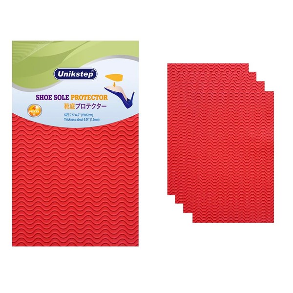 UNIKSTEP 2 Pairs (4 Pieces) Shoe Sole Protectors, Wave Pattern Shoe Bottom and Heel Non Slip Grips, Self Adhesive Anti Skid Noise Reduction Pads (Red)