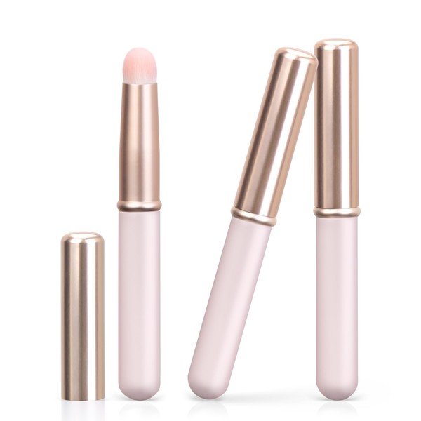 UNIMEIX 3 Pack Lip Blending Brush with Lid, Round Head Lipstick Smudge Brush Spot Concealer Brush Professional Lip Gloss Applicators for Lipstick Gloss Creams