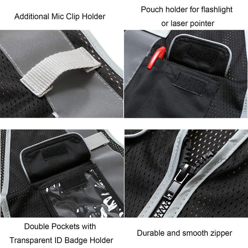 - 【MULTI-FUNCTION POCKETS】This UNINOVA safety vest comes with 6 front pockets, 2 Mic clip holders and one D ring, perfect for cell phone, Mic, flashlight, pens, laser pointer and business cards