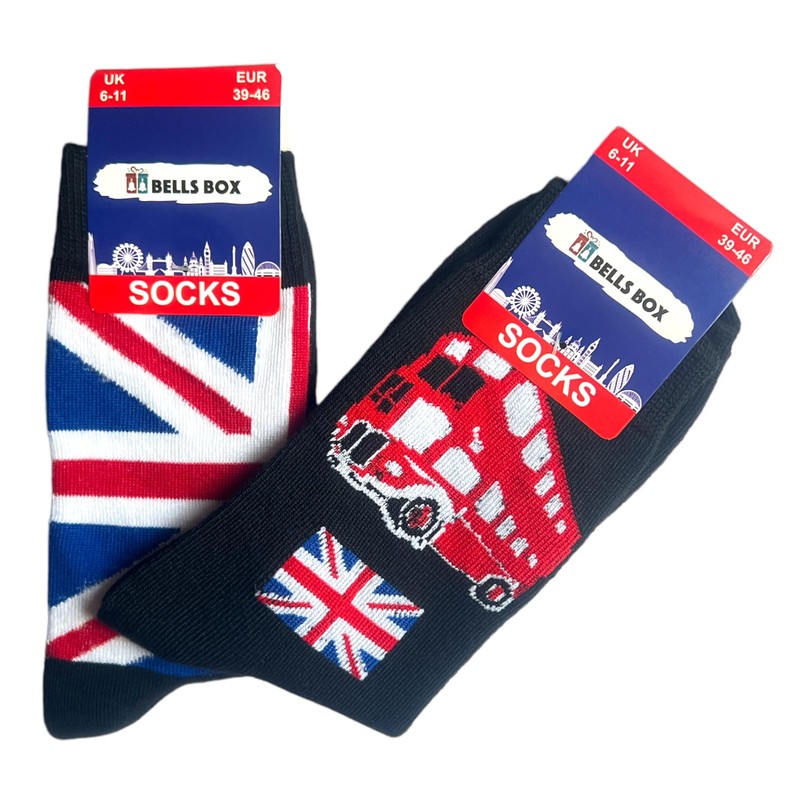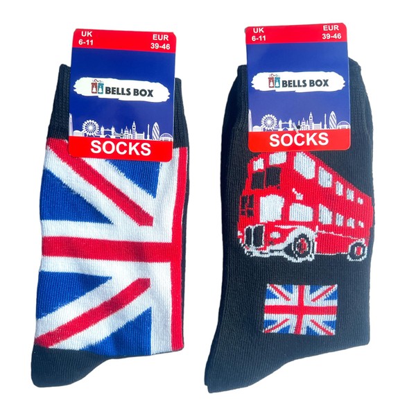 Union Jack 2 Pairs Men's Socks - London Bus & British Flag Socks