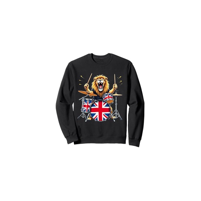 Union Jack Flag Lion Playing Drums UK Flag Sweatshirt