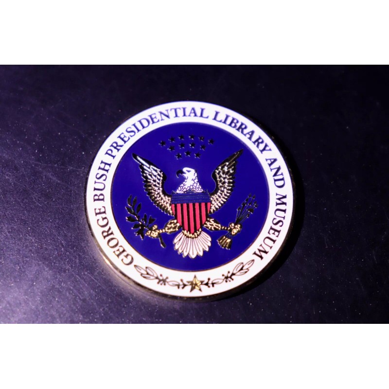 George Presidential Library and Museum on one side and 4141 Presidential funeral train on another side.