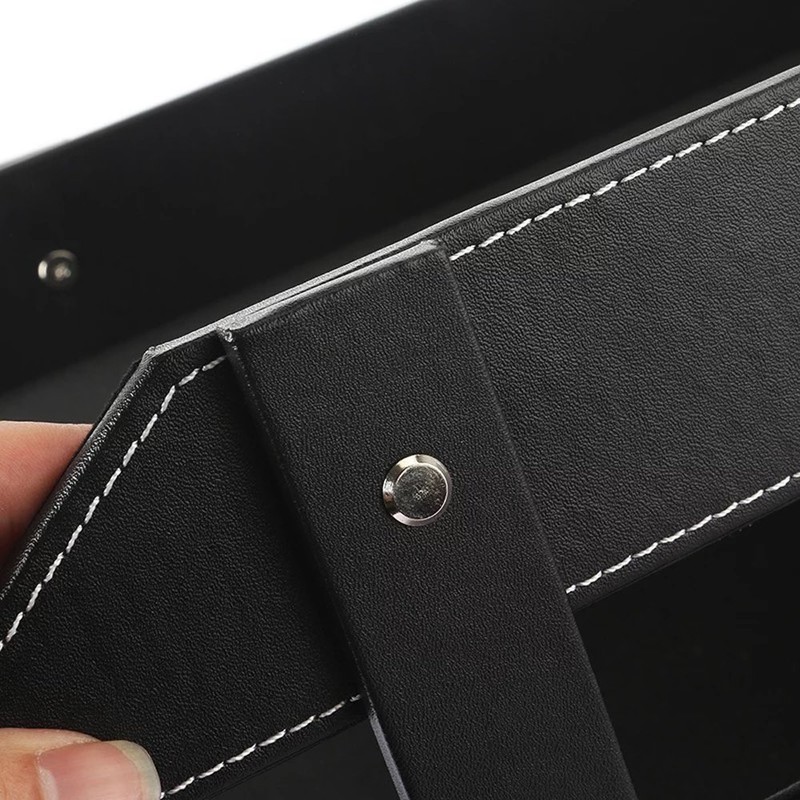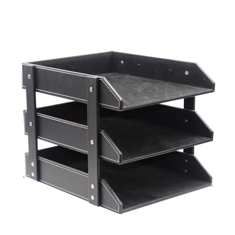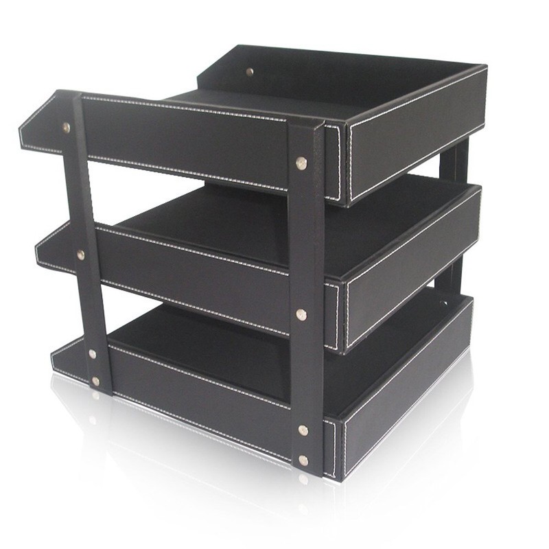 UnionBasic PU Leather Stackable Office File Document Tray Case Rack Desk File Document Organizer Holder (Black (3-Tray))