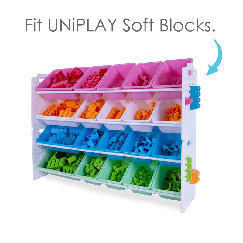 - GROW WITH UNiPLAY — Our toy storage bin organizer will help teach your kids about organization at an early age. The easy-to-see and easy-to-access plastic removable bins are a convenient way to organize and display your favorite items